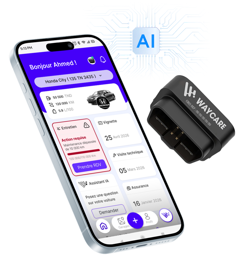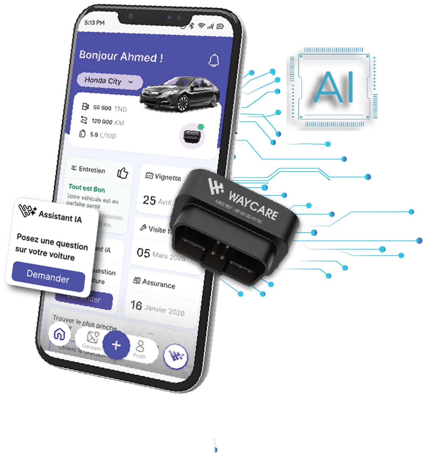 *Les fonctionnalités de base de WayCare sont accessibles sans boîtier OBD.